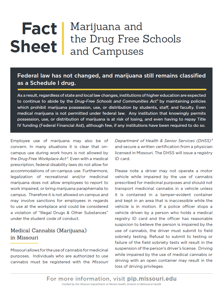 THC and CBD: Understanding the Components of CannabisMarijuana and the Drug Free Schools and Campuses ActCannabis-Related Health Education Opportunities