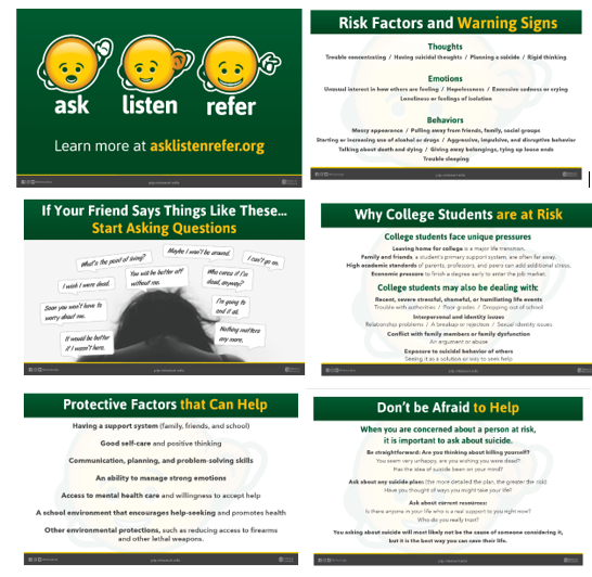 - Recognize the risk factors, protective factors, and warning signs of suicide among college students
