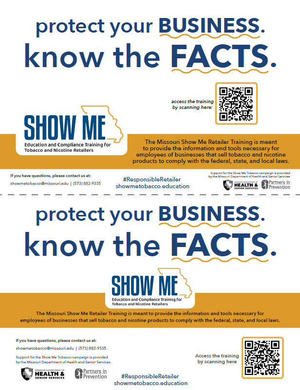 • For more information and resources to support retailer education, please visit Show Me Tobacco.